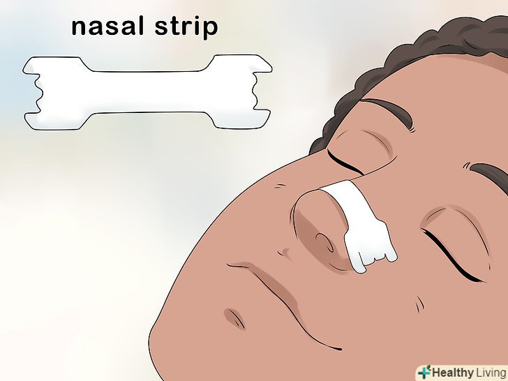 Використовуйте носові смужки або носовий Розширювач, щоб тримати дихальні шляхи відкритими.продаються без рецепта носові смужки є простим і дешевим засобом, який дозволяє розкрити дихальні шляхи. Вони прикріплюються до зовнішньої поверхні ніздрів і розширюють їх. Носовий Розширювач також являє собою багаторазову смужку, яка кріпиться на носі і допомагає розширити дихальні шляхи.[10]- Носові смужки і носовий розширювач можна придбати в аптеці або замовити через Інтернет.