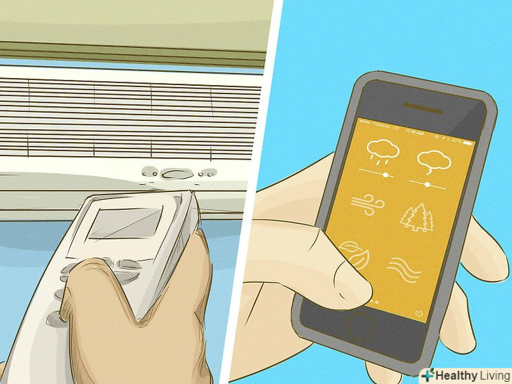 Знайдіть джерело білого шуму.білий шум - це вид шуму, який створюється за рахунок телевізора або вентилятора. Спробуйте знайти джерело білого шуму, щоб краще заснути. Наприклад, можна включити вентилятор, кондиціонер або інший електричний прилад, який створює білий шум. До того ж, можна купити спеціальний прилад, що створює білий шум – його можна замовити по інтернету.[3]- Якщо у вас не виходить знайти джерело білого шуму, можна включити на комп'ютері якусь передачу або відео / аудіо, які створять білий шум.