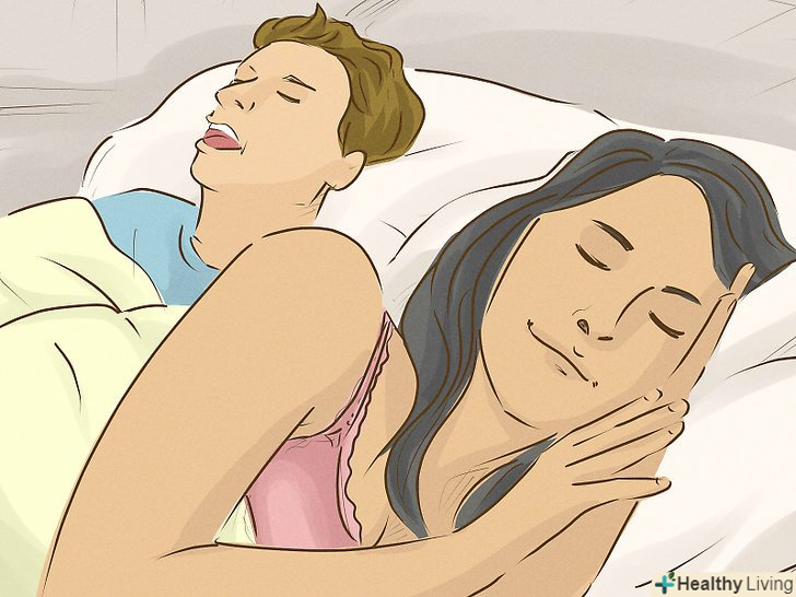 Попросіть свого партнера звернутися до лікаря, щоб виключити основні хвороби дихальних шляхів.хропіння може бути викликаний деякими медичними причинами, наприклад, апное уві сні (неможливістю дихати). Якщо у людини хронічний хропіння, слід звернутися до лікаря, щоб виключити основні захворювання.[14]- Щоб переконатися у відсутності проблем з дихальними шляхами, лікар призначить рентген сканування або інше обстеження.
