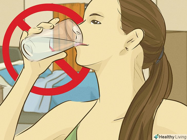 Попросіть людину не пити перед сном. Алкоголь допомагає розслабити м'язи горла, що може привести до посилення хропіння. Рясне пиття перед сном погіршує ситуацію, посилюючи хропіння. Попросіть людину не пити перед сном, особливо якщо вам потрібно буде зробити щось важливе вранці.[9]- Якщо ця людина любить випити перед сном, попросіть його піти вам назустріч і випити зовсім небагато-це допоможе зменшити хропіння.