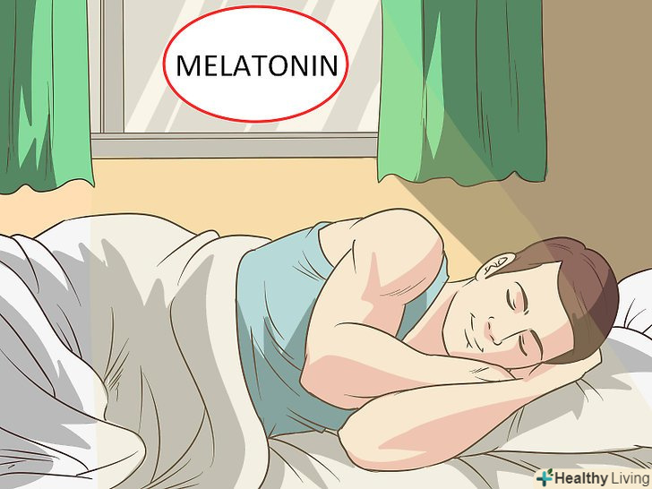 Спіть з наполовину закритими фіранками.приглушене світло може допомогти вашому тілу припинити вироблення мелатоніну і одночасно збільшити вироблення адреналіну.[6] це допоможе вашому організму бути готовим почати новий день до того моменту, коли продзвонить будильник.- Ви пам'ятаєте, як ми нещодавно сказали, що світло не дає вам заснути? Якщо ви спите, то він розбудить вас. Нічого собі, правда? Ваш організм сприймає природне сонячне світло, навіть якщо ви спите!