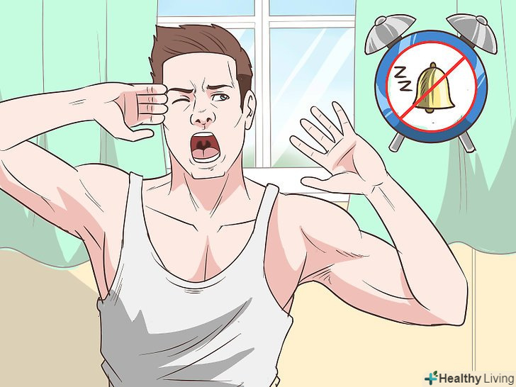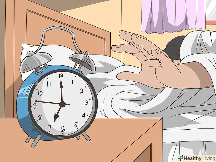 Дайте собі достатньо часу, щоб відпочити вночі.якщо ви звикли спати з півночі до 9:00, ви не зможете як і раніше лягати в 12 і очікувати, що дзвінок будильника в 6 ранку доставить вам хоч якесь задоволення. Так як ви встаєте все раніше і раніше, то і лягати слід все раніше і раніше. Ваша мета - не зменшити потребу уві сні (сон, зрештою, – річ настільки ж чудова, як і необхідна), а легше прокидатися рано вранці. Наука стверджує, що якщо вночі ви висипаєтеся, то день проходить набагато краще і ефективніше.[1]- Якщо засинати рано для вас схоже на тортури або ви не хочете витрачати занадто багато часу на сон, ви також можете спробуватипривчити ваш організм до меншої кількості сну. Це та ж сама ідея, але орієнтована на вироблення певного часу засипання.