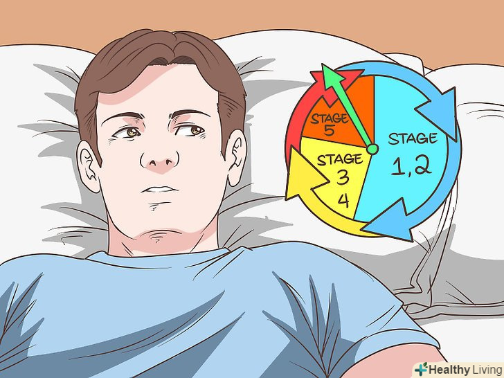 Постарайтеся прокидатися в кінці циклу сну, щоб мінімізувати ранкову слабкість.- Цикл сну складається з двох фаз: фаза швидкого сну і фаза повільного сну. У свою чергу, у фазі повільного сну три стадії: перша – дрімота, друга – легкий сон, третя – глибокий сон. Через 70-90 хвилин після засипання зазвичай настає фаза швидкого сну, під час якої ви бачите найяскравіші сни.[10]