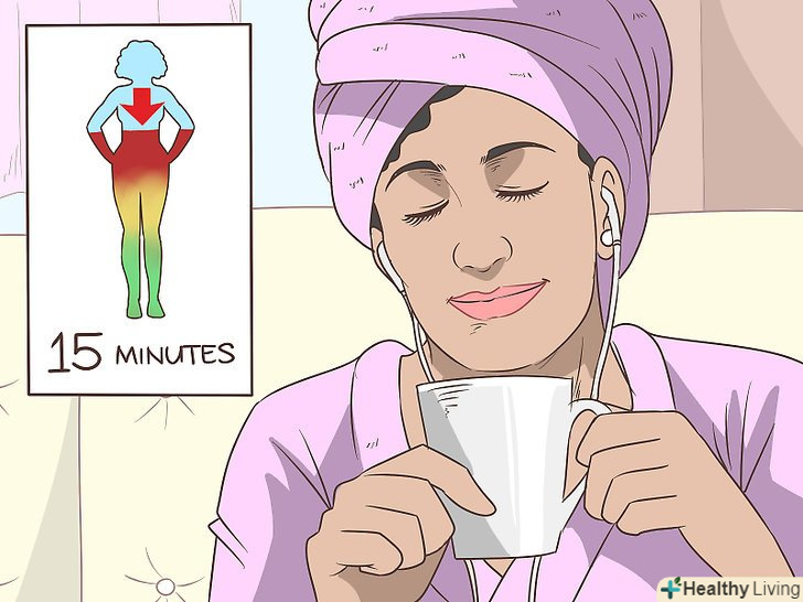 Розбудіть свої почуття.як тільки ви покинули ліжко, підбадьорте себе. Це може бути чашка чаю або кави (запах під час варіння точно допоможе вам прийти в себе), стакан холодної води або приємний душ. Що б ви не вибрали, переконайтеся, що це активує одне (або більше) з ваших почуттів. Коли стимули впливають на ваше тіло і свідомість, Ви автоматично прокидаєтеся, щоб відреагувати.- Світло і звук можуть також зіграти чималу роль в доповненні до смаків, запахів і відчуттів. Відсуньте фіранки, включіть приємну музику і почніть Ранок з правильної ноги. Чим краще ранок, тим краще будуть день і вечір!