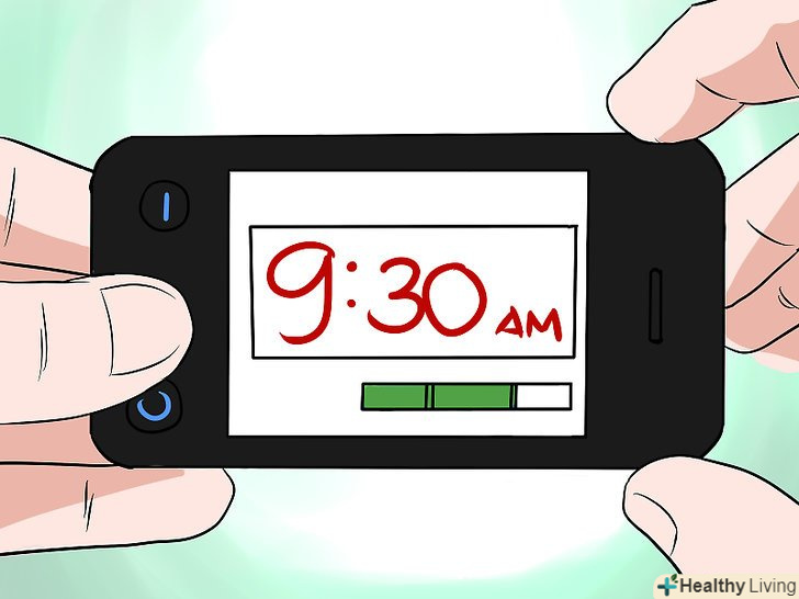 Прокиньтеся раніше і приляжте подрімати.встановіть будильник за 1,5 години до того часу, коли вам дійсно потрібно буде прокинутися. Відправляйтеся спати в звичний для себе час і прокиньтеся, коли продзвенить будильник. Якщо вам щось снилося-запишіть цей сон. Пильнуйте наступні 1,5 години, потім знову вирушайте спати. В цей час можна погортати свій щоденник, куди ви записували свої сни, можна почитати якусь інформацію з приводу усвідомлених сновидінь, якщо хочете.[16]- Ляжте в ліжко, займіть найзручніше положення і постарайтеся розслабитися, дихайте повільно і глибоко.[17]