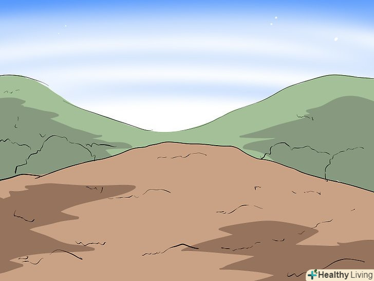 Візуалізуйте цей політ.Оточіть себе зображеннями і образами польоту. Дивіться фільми, в яких герої літають: супергерої, птахи, люди. Переглядайте знімки, зроблені з висоти пташиного польоту, уявляйте, ніби ви летите над цими пейзажами. Подивіться на зображення космосу, уявіть собі, як це-летіти через абсолютну порожнечу.- Закрийте очі і спробуйте уявити, як ви парите над цим пейзажем.