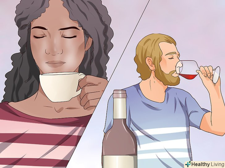 Утримуйтеся від кофеїну і алкоголю.кава та інші кофеїновмісні напої можуть порушити нормальний сон. Кава здатна затримуватися в організмі до восьми годин, так що випита після обіду чашка кави може перешкодити вам заснути ввечері. Намагайтеся не пити каву в другій половині дня і ввечері.[17]- Алкоголь також порушує нормальний сон. Після вживання спиртного сон стає менш міцним, скорочуються періоди глибокого сну і важлива для відновлення сил фаза швидкого сну (БДГ-фаза). Навіть якщо вам здається, що трохи спиртного допомагає заснути, сон буде менш якісним, і вранці ви будете відчувати брак сил і втому.[18]