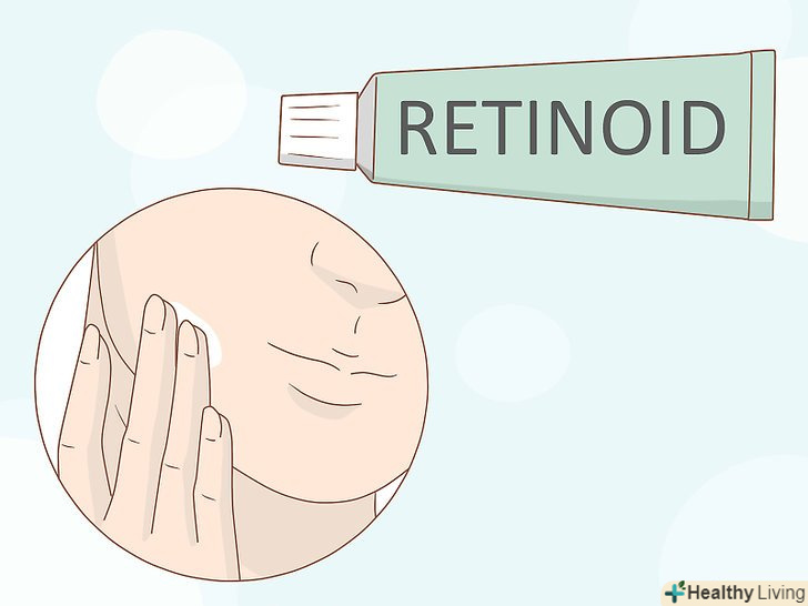 Використовуйте невелику кількість ретиноїдів.ретиноїди містяться в самих різних засобах для шкіри. Вони борються з висипом вугрів, зморшками, чорними крапками, веснянками і підсилюють вироблення колагену.[19]