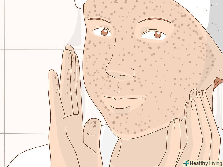 Відлущуйте шкіру.якщо пори не очищати, вони будуть забиватися і виглядати крупніше. Вичищайте бруд і жир за допомогою м'якої щітки і засоби для вмивання щовечора.[23]