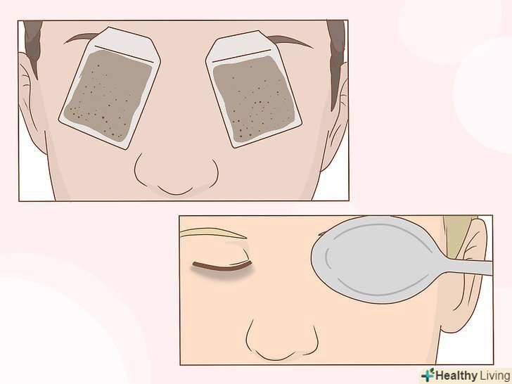 Позбавтеся від темних кіл під очима.спробуйте зробити маску з огірків, прикласти до очей ложки або чайні пакетики. У чаї міститься танін, який бореться з набряками. Якщо вирішите використовувати огірки або ложки, спочатку залиште їх в холодильнику на кілька годин. Ці кошти мають дію, схожим з дією льоду, — вони зменшують запалення і больові відчуття. Прикладіть що-небудь із засобів, перерахованих вище, на пару хвилин до шкіри повік.