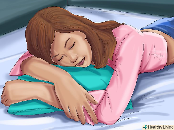 Спите на боці.якщо ви ніяк не можете виспатися, то спробуйте змінити положення для сну. Зазвичай люди сплять в одному з трьох положень: на спині, на боці або на животі.[12][13] положення на боці найчастіше рекомендують завдяки зручності і низькій ймовірності переривання сну.- Якщо ви спите на боці, то зліг зігніть коліна у напрямку до грудей (аналогічно "положенню ембріона").