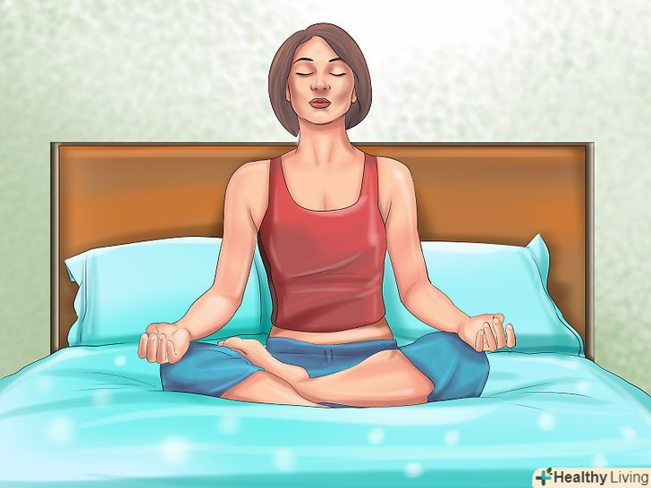 - Медитація та / або дихальні вправи також допомагають заспокоїтися.[39] просте дихальне вправу: рахуйте до 3 або 4 під час вдиху, а потім видихайте, рахуючи до 6 або 8.[40] кілька повторень допоможуть вам заспокоїтися і підготуватися до здорового сну.