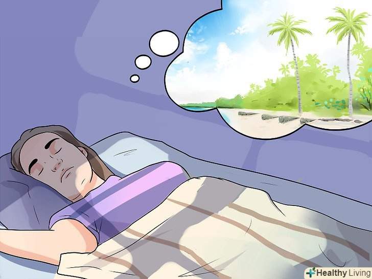 Уявіть собі спокійне місце.спробуйте уявити спокійне місце, яке викликає у вас приємні емоції. Це може бути музей, парк або туристичний маршрут. Подумки почніть прогулянку, звертаючи увагу на деталі: кольори, світло, тінь і інші елементи навколишнього оточення. Згадайте, які емоції ви відчували, коли здійснювали цю прогулянку. Це заняття відволікає вашу свідомість від сьогодення, сприяючи розслабленню і сну. [13]