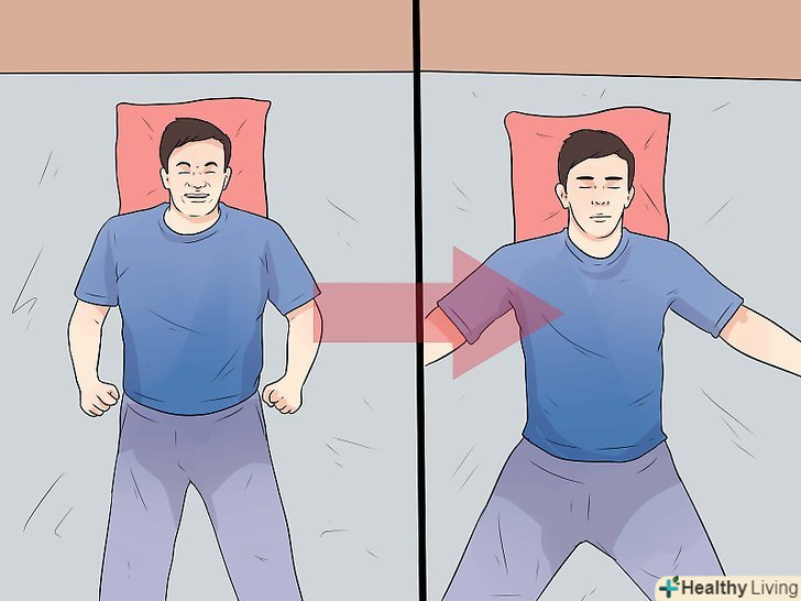 Практикуйте метод прогресивної м'язової релаксації.цей простий метод релаксації допомагає зняти напругу і заспокоїтися. Прогресивна м'язова релаксація полягає в напрузі і розслабленні всіх груп м'язів обличчя і тіла в певній послідовності, починаючи з пальців ніг, далі м'язи стегон, сідниць, живота, плечей, шиї та обличчя. Тримайте напругу щонайменше 30 секунд. Потім розслабте напружений м'яз.[14]