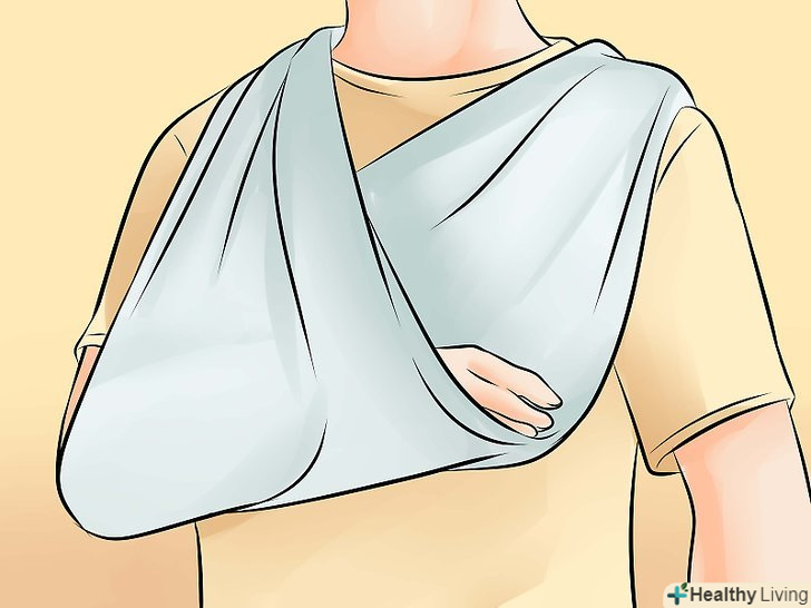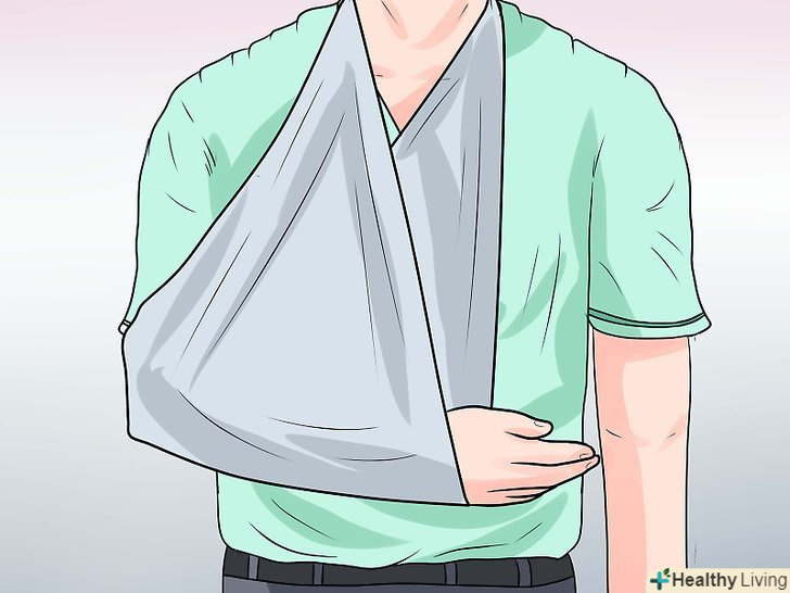 Протягом дня носите підтримуючу пов'язку.після операції на плечі хірург або лікар порекомендують, а може і видадуть вам підтримуючу пов'язку для руки, яку слід носити протягом декількох тижнів. Така пов'язка підтримує плече, вона не дає руці опускатися під дією сили тяжіння, що може посилити біль в недавно прооперованому плечі.[6] носіть підтримуючу пов'язку, коли не спите — - це дозволить зменшити набряк і роздратування в плечі в кінці дня, і ви зможете легше заснути ввечері.- Одягайте підтримуючу пов'язку на шию таким чином, щоб це було зручно для загоює плеча.