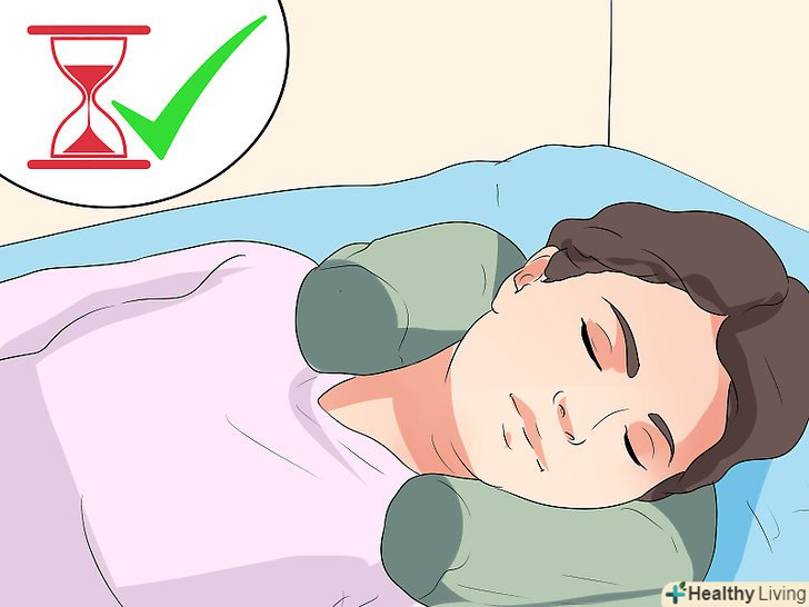 Переконайтеся в тому, що ви лежите рівно.поклавши голову на подушку, важливо перевірити, наскільки рівно ви лежите. Це необхідно для захисту шиї і забезпечення найбільш комфортного нічного сну.[11]- Слідкуйте за тим, щоб шийна подушка обов'язково підтримувала вас, але не нахиляла при цьому голову вперед або назад, коли ви лежите на спині.