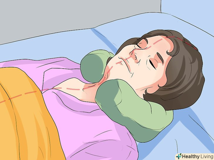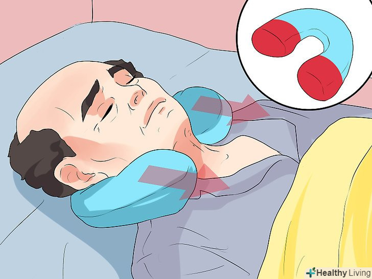 Переверніть шийну подушку.деяким людям не зовсім зручно спати з валиком за шиєю. Крім того, з класично розташованою шийною подушкою голова сплячого іноді може падати вперед. У таких ситуаціях можна перевернути подушку в іншому напрямку, щоб підтримати голову спереду і зберегти пряме положення шиї.[7]