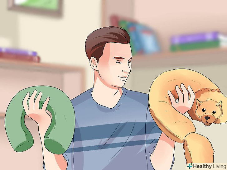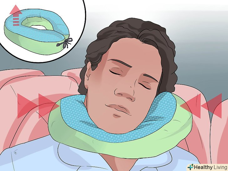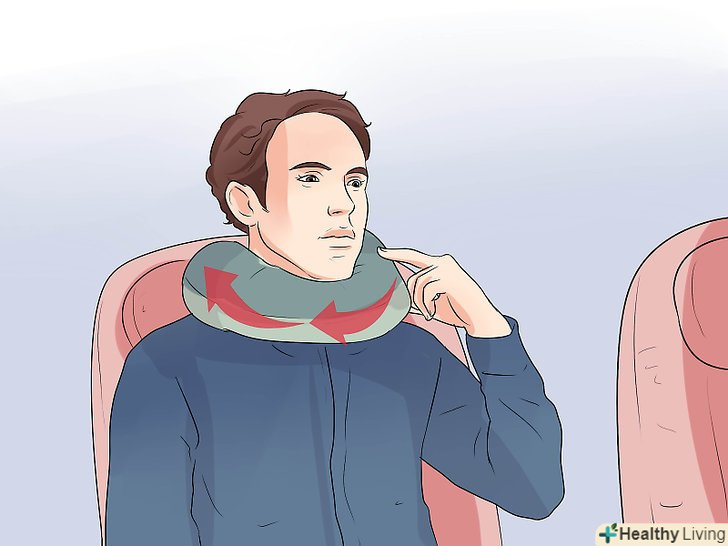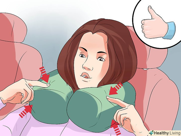 Замініть стару шийну подушку для подорожей на нову.час старих і не дуже зручних надувних шийних подушок давно минув. У наші дні можна придбати дуже комфортну шийну подушку для подорожей, з якої вам буде зручно спати навіть в дуже людних місцях. Скористайтеся можливістю придбати сучасну м'яку подушку для шиї, щоб забезпечити тобі комфорт під час поїздок.[3]- Врахуйте власні особливі потреби. У вас бувають болі в шиї і спині? В такому випадку вам потрібно використовувати подушку, яка надійно підтримує вашу голову в піднятому положенні. Якщо ж вам важливо мати можливість ворушитися і не турбувати при цьому своїх попутників, можна подумати про шийної подушці в формі класичного розімкнутого бублика, наповненої гелем.