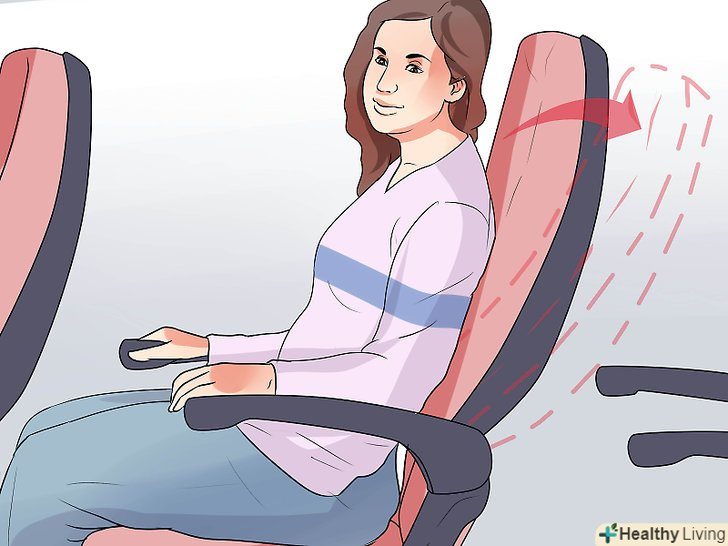 Відкиньте спинку сидіння.вертикальне положення спинки сидіння може викликати болі в спині, і багатьом людям важко засипати в такому положенні. Максимально відкинута назад спинка сидіння дозволяє зняти навантаження з нижньої частини спини. Крім того, такий стан спинки забезпечує найбільш оптимальне застосування шийної подушки.[6]- Пам'ятайте про людину, яка сидить позаду вас. Наприклад, якщо ви перебуваєте в літаку і в даний час там роздають харчування, відкидайте спинку свого сидіння зовсім трохи, або дочекайтеся того моменту, коли прийом їжі буде закінчено. Завжди регулюйте своє сидіння, орієнтуючись на фактичну ситуацію.