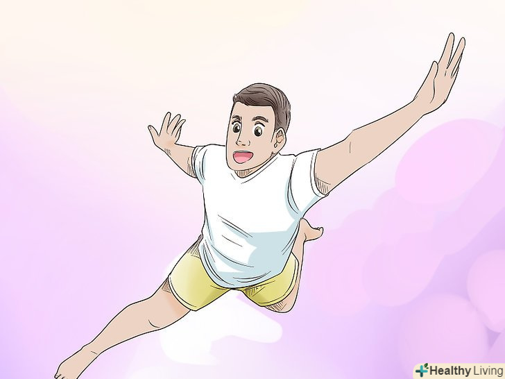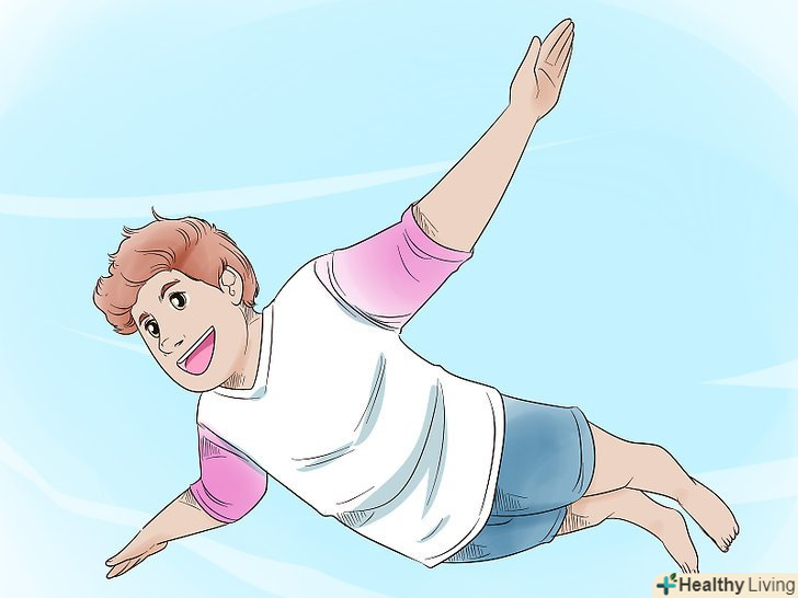 Перевірте свої сили і здібності.якщо ви можете піднімати дуже важкі предмети або літати, ви напевно спите. Але пам'ятайте, що в контрольованому сні можна розвинути навички, які знадобляться вам в реальному світі. Деякі лікарі та психотерапевти використовують це в роботі з людьми, які перенесли травми, допомагаючи їм уявити, як їх організм відновлюється. Однак наступні навички вказують на те, що людина спить. Перевірте свої здібності за цим списком:[5]- Спробуйте злетіти або завмерти в повітрі. Якщо вам це вдасться, ви спите.