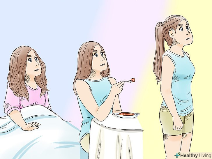 Знайте основні ознаки сну.є кілька класичних ознак сну, які зустрічаються у багатьох людей і вказують на те, що людина спить. Ці сни часто переростають в підсвідомі страхи, і практично у всіх бували варіації таких снів. Але вчені встановили, що ми можемо контролювати зміст своїх снів і можемо використовувати спеціальні прийоми, які можуть запобігти появі небажаних снів.[9]- Подумайте, що ви хочете побачити уві сні, перш ніж ляжете спати.