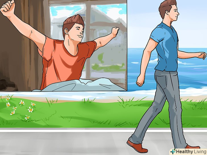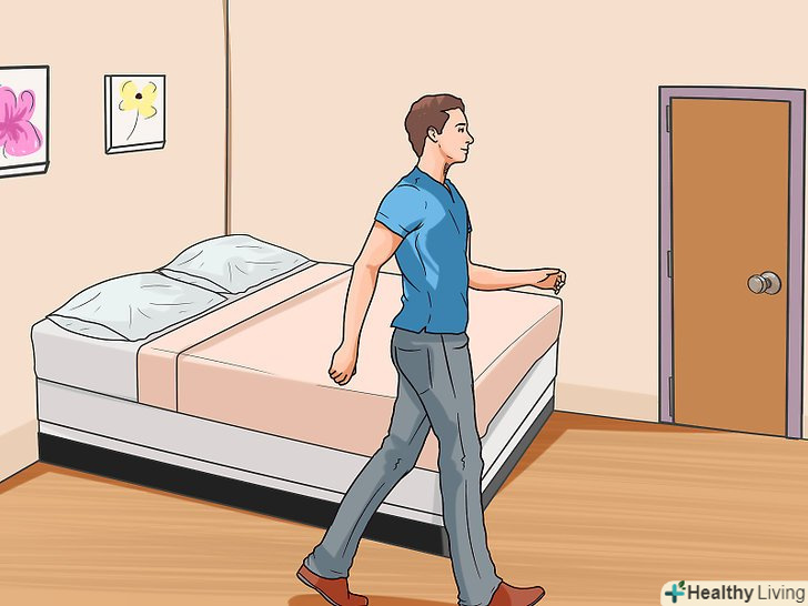 Встаньте відразу ж, як тільки прокинетеся.пробудження і підйом-дві різні речі. Увімкніть світло або зайдіть в приміщення з уже неспали людьми. Можна також прийняти душ, щоб струсити з себе сон. Ні в якому разі не залишайтеся в ліжку, інакше вас знову огорне сон. Встаньте з ліжка і порухайтеся, щоб остаточно прокинутися і розім'ятися перед тим, як робити подальші дії.- Не думайте, що не заснете, якщо не вимкнете будильник. Якщо ви сильно втомилися, то можете заснути і під сигнал будильника. Якщо ви забаритеся в ліжку, будильник може виявитися марним.