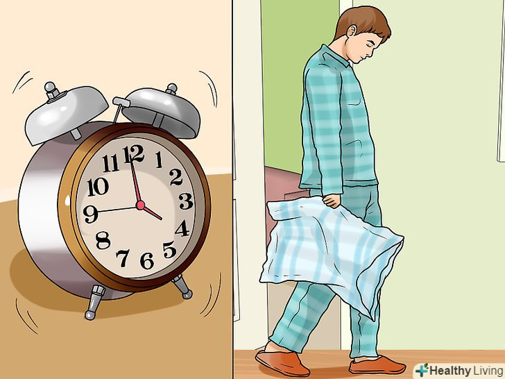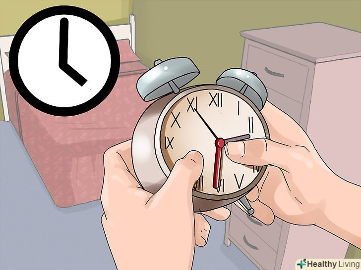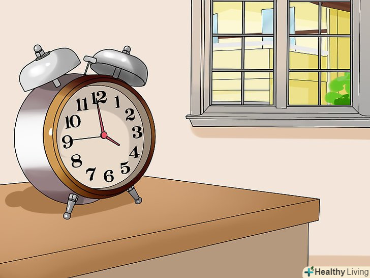 Налаштуйте будильник так, як вам потрібно.нестандартний режим позбавляє вас можливості підтримувати добовий циркадний ритм. Якщо ви не можете вставати в один і той же час кожен день, ймовірно, ваш організм буде сильніше чинити опір будильнику і необхідності встати. Встановіть будильник відповідно до своїх потреб.- Намагайтеся прокидатися якомога ближче до одного і того ж часу кожен день, якщо це можливо. Наприклад, якщо ви можете встановити регулярний режим сну — навіть якщо при цьому вам доведеться прокидатися за кілька годин до того, як з'явитися куди-небудь — постарайтеся лягати спати і прокидатися в один і той же час.