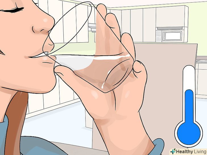 Знизьте температуру тіла.[9] це набагато легше зробити взимку або в прохолодному офісі. Зніміть куртку або шарф. Закатати Довгі рукави. Візьміть склянку крижаної води, зробіть кілька ковтків, знову наповніть його і поставте на стіл. Якщо біля вашого столу стоїть нагрівач, вимкніть його. Можна навіть включити вентилятор, щоб охолодитися.