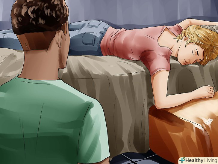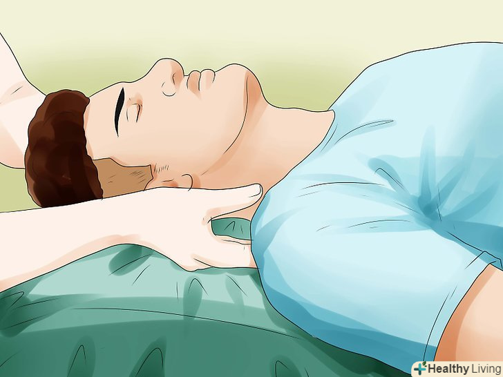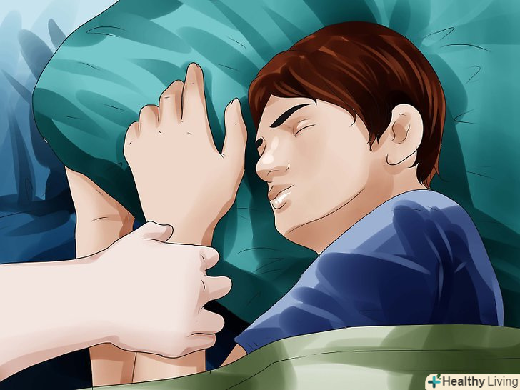 Спробуйте розбудити людину, прикрикнувши або доторкнувшись до нього рукою. якщо ви побачили людину, сплячу на підлозі або в незручному становищі, або ви підозрюєте, що людині стало погано або він знаходиться в алкогольному сп'янінні, не соромтеся розбудити його. Голосно скажіть щось і обережно потрясіть його за плечі. Якщо він не відповідає, негайно зателефонуйте в службу швидкої допомоги. Крім того, ви можете перевірити стан сплячого, виконавши наступні дії.- Якщо людина реагує на ваші слова, але дивно поводиться, попросіть його поворухнути пальцями і відкрити очі. Якщо він не може цього зробити, він потребує медичної допомоги.