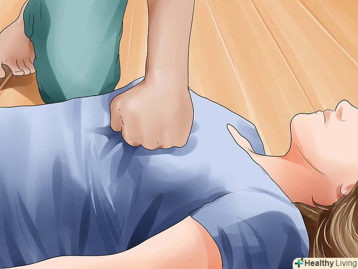 Потріть в області грудної клітини по центру уздовж хребта рукою, складеної в кулак.робіть це тільки в разі крайньої необхідності. Цей метод дуже болючий і при неправильному його здійсненні може завдати шкоди людині. Однак якщо жоден з вищеописаних методів не працює, а ви дуже турбуєтеся за здоров'я сплячого, ви можете використовувати цей метод. Помістіть руки в центр грудної клітини по лінії хребта. Робіть рух кулаком вгору і вниз, до тих пір, поки людина не відреагує або протягом 30 секунд.[4]- Спробуйте цей метод на собі в першу чергу, щоб визначити наскільки сильно необхідно тиснути; не варто робити це дуже сильно, щоб не викликати неприємні почуття у людини.