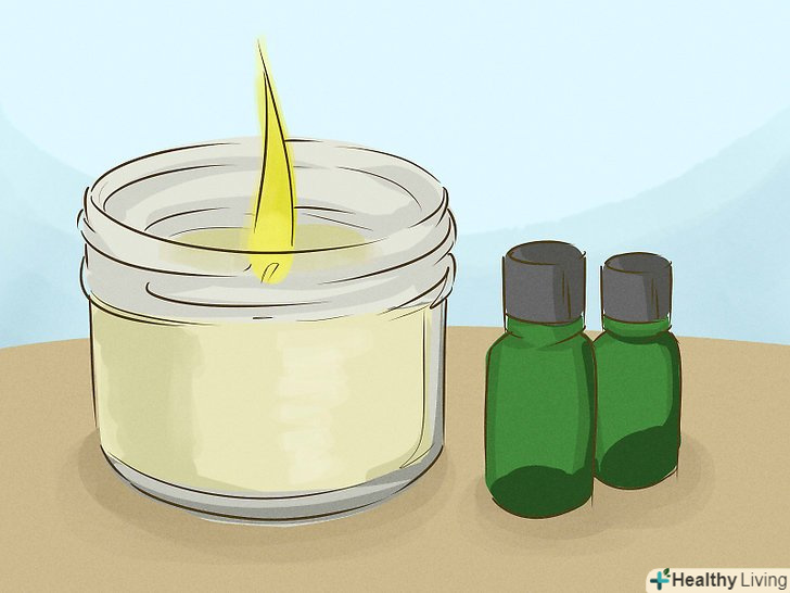 Застосовуйте ароматерапію. Деякі аромати сприяють бадьорості. Наприклад, можна використовувати такі аромати, як перцева м'ята, кориця, евкаліпт і розмарин, які допоможуть вам підбадьоритися. Насолоджуйтесь запахом ефірних масел або запаліть свічку з обраним ароматом; ви також можете використовувати ароматний лосьйон.[19]