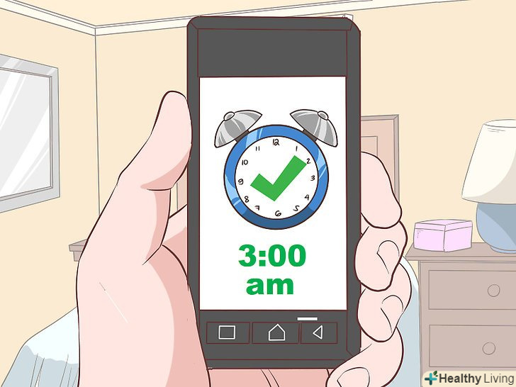 Почніть прокидатися в один і той же час протягом місяця.ваші внутрішні годинники, відомі як циркадний ритм, контролюються нервами в мозку. Щоб підтримувати такий ритм, доводиться слідувати передбачуваному порядку. Саме тому Ви можете прокинутися на вихідних в той же час, що і в будній день, якщо всі фактори співпадуть. Кращий спосіб змінити свій режим сну-задіяти сталість і порядок.[1]- При цьому дуже важливо не втратити сну. Існує безліч досліджень, які доводять небезпеку втрати сну, тому перед спробою кардинальної зміни режиму сну найкраще поговорити з лікарем.[2]
