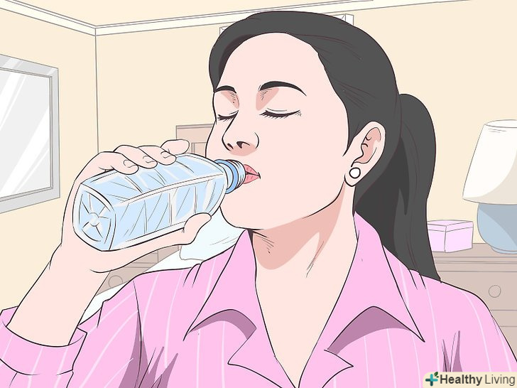 Пийте багато води перед сном. Сечовипускання також є важливою функцією організму. Вода може розбудити вас посеред ночі; необхідна для цього кількість води залежить від багатьох факторів на зразок маси тіла і віку, тому його слід визначити методом проб і помилок.- Спробуйте випити багато води або пийте різну кількість протягом декількох ночей, щоб підібрати оптимальний обсяг. Вода-прекрасний вибір, адже на відміну від стимуляторів на зразок гарячих напоїв з кофеїном або цукром ви зможете нормально заснути.
