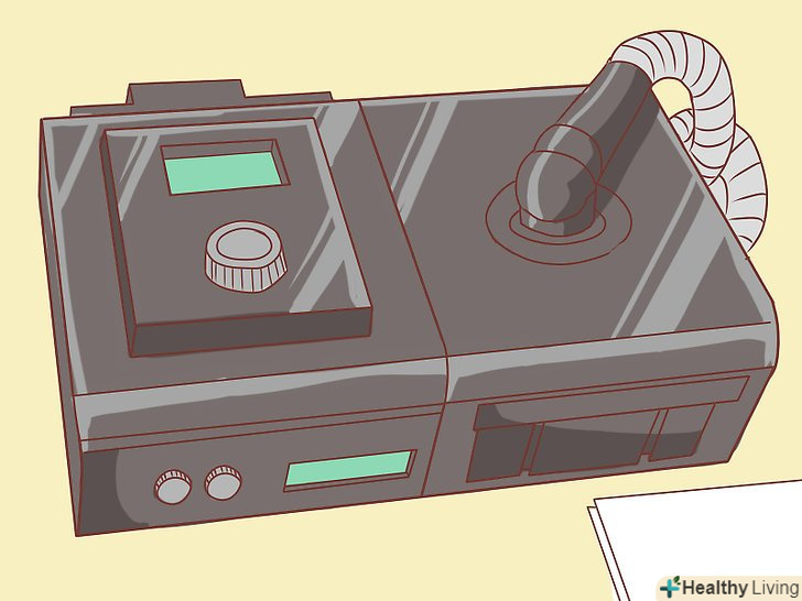 Приступите до СІПАП-терапії. після дослідження сну лікар розповість вам про різне обладнання для СІПАП. [59]- СИПАП-апарати забезпечують постійний потік повітря з достатнім тиском для того, щоб не дати тканинам рота і гортані зімкнутися і перекрити дихальні шляхи під час сну. [60]