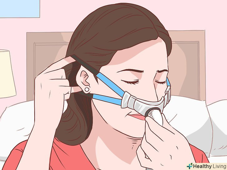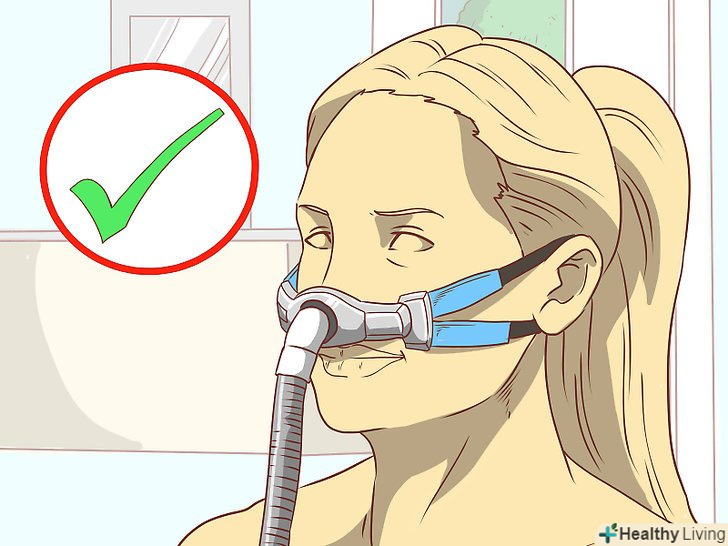 Одягайте маску щоночі. сонне апное збережеться, якщо ви не будете використовувати маску з відповідним тиском повітря. Необхідно надягати маску щоночі. [75]- Крім того, вам буде потрібно від одного до трьох місяців для того, щоб звикнути спати в масці. Якщо ви прокинетеся серед ночі і виявите, що маска спала, надіньте її назад і продовжуйте спати. Для СИПАП-терапії слід привчити себе спати в масці.