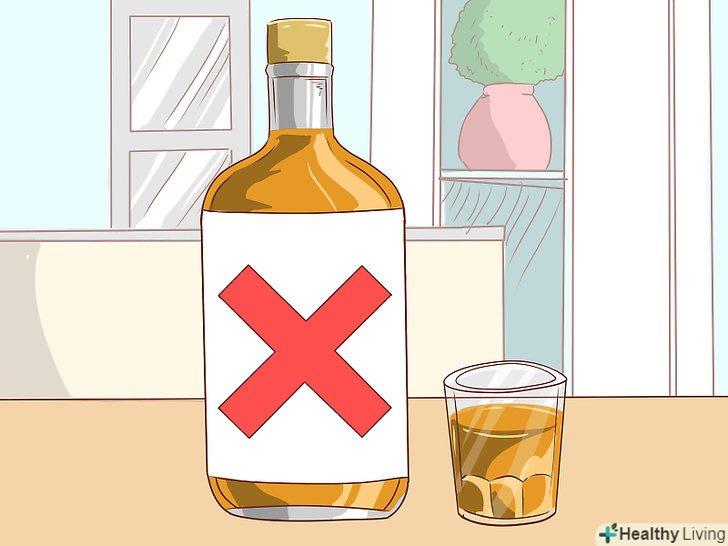 Утримуйтеся від спиртних напоїв, особливо від їх частого і непомірного вживання. Алкоголь значно уповільнює дихання, в результаті чого рівень кисню в крові падає нижче нормальних значень. Якщо ви відчуваєте симптоми апное уві сні, вашому мозку потрібно більше кисню. [35]- Не вживайте алкогольні напої за чотири години до сну. [36]