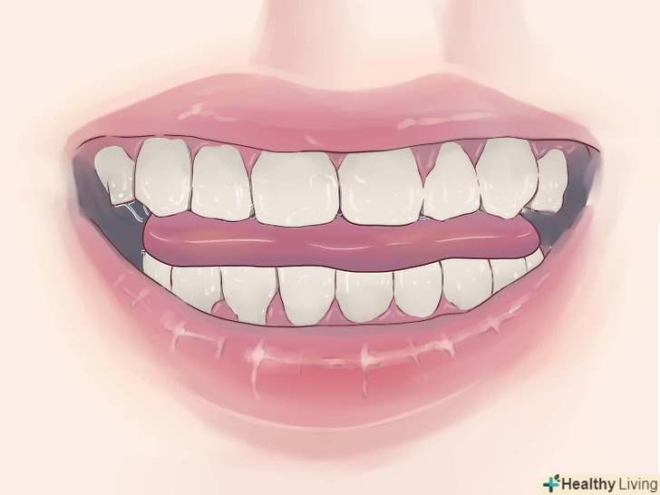 Привчайте себе не стискати щелепи протягом дня. якщо ви помічаєте, що ваші щелепи напружені або що ваші зуби скрегочуть, постарайтеся розслабити щелепи, помістивши кінчик язика між зубами. [10]