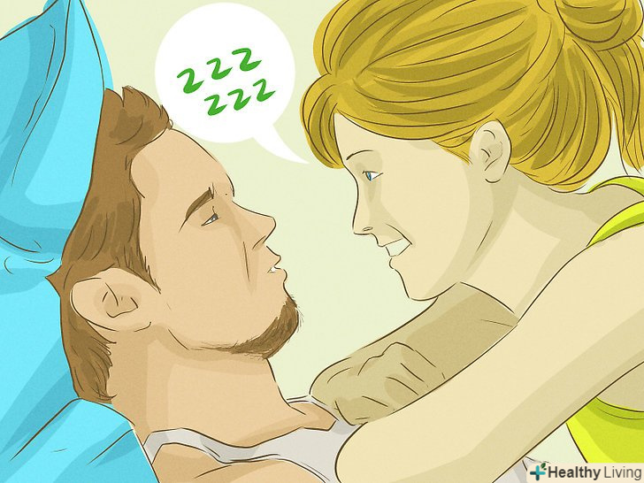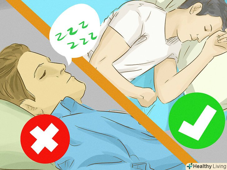 Попросіть вашого партнера спати на боці або животі. ймовірність хропіння збільшується, коли партнер спить на спині. Це пов'язано з тим, що зайва вага тисне на дихальну систему і шию. [7]- Деякі рекомендують спати з чимось незручним, наприклад тенісним м'ячем, пришитим до майки в області спини. Через це вашому партнерові буде незручно спати на спині і він буде змушений змінити положення.