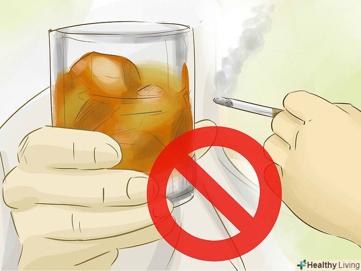 Уникайте алкоголю та куріння. вживання алкоголю і куріння шкодять горлу і дихальній системі. Ваш партнер повинен постаратися уникати і того і іншого, щоб запобігти виникненню хропіння. [14]- Алкоголь призводить до розслаблення м'язів шиї і мови, що може обмежувати потік повітря.