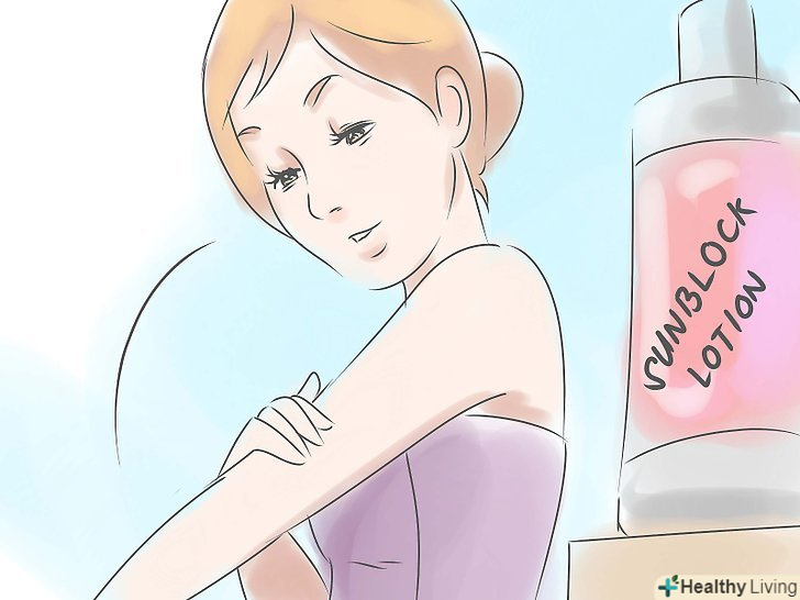 Використовуйте сонцезахисний крем весь час.переконайтеся, що ваші косметичні продукти містять сонцезахисний крем для запобігання виникненню зморшок і пошкоджень від ультрафіолетового випромінювання. Крім того, обмеження попадання сонячного світла допоможе зберегти молодість вашої шкіри, волосся і тіла.[4]