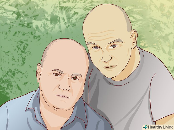 Зверніть увагу на родичів по лінії матері і батька. те, що схильність до облисіння успадковується тільки по материнській лінії і що ви можете страждати облисінням, якщо батько вашої матері був лисим – це всього лише поширений міф. Так, генетики в цьому випадку заявляють про 80% ймовірності облисіння,[4] але у вас є така ж ймовірність облисіти, якщо ваш батько або дід по лінії батька були лисими.[5] по суті, вам необхідно поглянути на батька, дідів, дядьків, і двоюрідних братів (всіх найближчих родичів чоловічої статі) і визначити, наскільки густі їх волосся при їх віці. Якщо у родичів спостерігається облисіння, поцікавтеся, коли почався цей процес. Чим у вас більше родичів з облисінням, тим для вас вище ризик розвитку облисіння за чоловічим типом.- Тільки один з декількох генів, відповідальних за облисіння, передається виключно від матері до сина, але інші гени передаються звичайним шляхом, тому Лисий батько також може мати лисого сина.