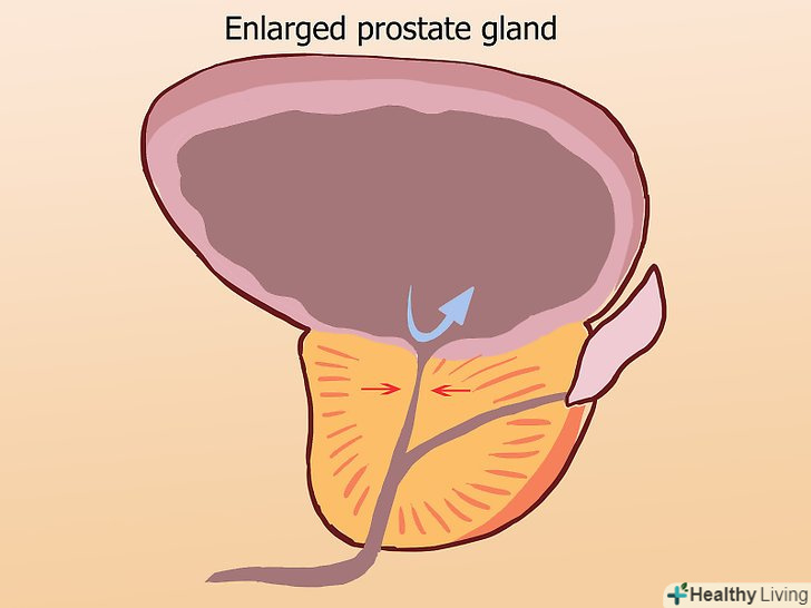Зрозумійте зв'язок між облисінням і збільшенням простати.збільшення передміхурової залози (простати) може також створювати підвищений ризик розвитку чоловічого облисіння.[9] доброякісне збільшення простати з підвищенням віку стає все більш і більш поширеним і теж пов'язано з рівнем ДГТ в організмі. Таким чином, якщо ви відчуваєте на собі симптоми збільшення простати і підозрюєте у себе початок процесу облисіння, то, найімовірніше, це не гра вашої уяви, адже обидві проблеми пов'язані з підвищеним рівнем ДГТ.- До ознак і симптомів збільшення простати відносять прискорене сечовипускання і часті позиви в туалет, утруднення початку або закінчення сечовипускання, хворобливі відчуття при сечовипусканні, нетримання.[10]