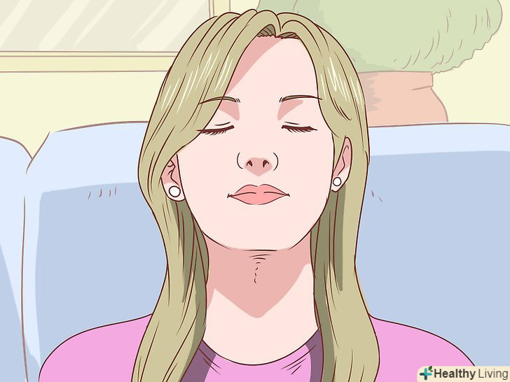Сфокусуйтеся на диханні. [4] правильне глибоке дихання допоможе заспокоїтися і знизити серцевий ритм. Зосередьтеся на кожній фазі дихання і на тому, як повітря проникає в ваш організм: відчуйте, як він проходить носові ходи, а потім виявляється у вас в грудях, спробуйте уявити, як плавно потік повітря виходить через ніс або рот. Сконцентруйте всю увагу на цьому процесі і цих відчуттях.- Вдихніть повільно і глибоко, щоб повітрям спочатку наповнився живіт, а лише потім груди.