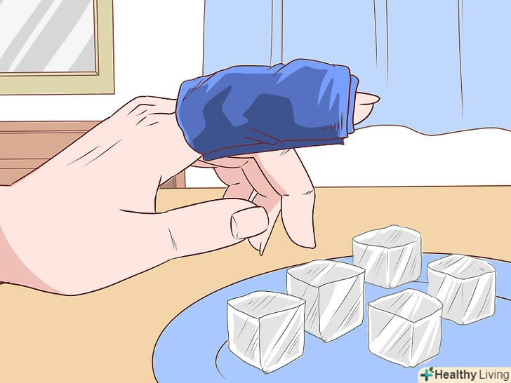 Прикладіть лід до місця удару.[1] з точки зору медицини, це перше, що необхідно зробити в разі, якщо ви прищемили палець. Справа в тому, що холод через деякий час як би "заморожує" місце удару. Спочатку лід може викликати неприємне відчуття поколювання, але варто трохи потерпіти і потримати лід на місці удару ще якийсь час. Через деякий час під впливом низької температури чутливість тканин зменшиться, і ви відчуєте полегшення.