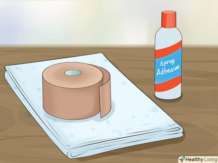 Запасіться всім необхідним.Зберіть (або придбайте в найближчій аптеці) все, що вам знадобиться для того, щоб як слід перев'язати вивихнуте плече. Крім липкого спрею, вам будуть потрібні ортопедична прокладка або піна для того, щоб прикрити чутливий сосок, міцна медична стрічка (найкраще взяти стрічку шириною 38 мм) і еластичний бинт (добре підійде бинт шириною 75 мм).[5] майте на увазі, що при накладенні пов'язки на плече вам, швидше за все, буде потрібно чиясь допомога, навіть якщо у вас є необхідний досвід.- У кабінеті ортопеда, фізіотерапевта, спортивного тренера або лікаря напевно знайдеться все необхідне для перев'язки плеча. Однак у сімейного лікаря, медсестри, терапевта, або хіропрактика може не виявитися чого-небудь, тому захопіть з собою всі необхідні матеріали.
