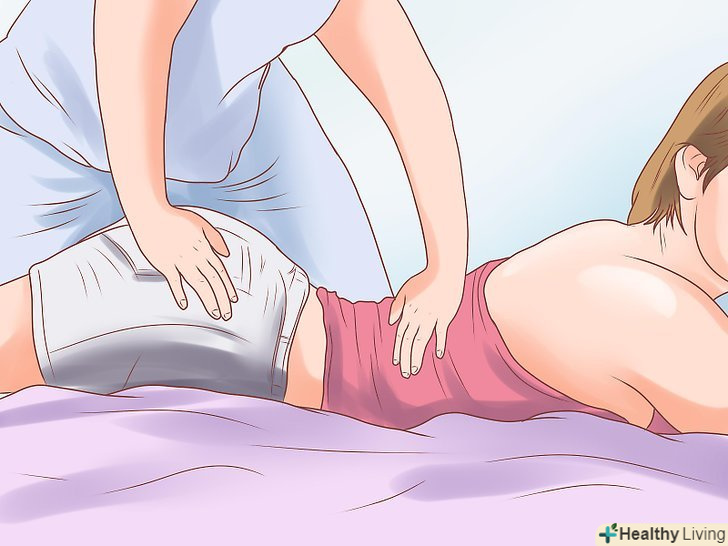 Масажуйте область, де знаходиться затиснутий нерв.краще це робити з теплим масажним маслом, яке буде сприяти розслабленню защемленого нерва. Ви можете попросити кого-небудь робити масаж кульшового суглоба або записатися на прийом до масажиста.- Хороший масаж робиться з використанням довгих, твердих натискань і постійного тиску, щоб розслабити м'язи стегна, зменшити спазми і зняти напругу в нерві. Іноді розслабленню м'язів і нервів сприяють м'які вібрації.