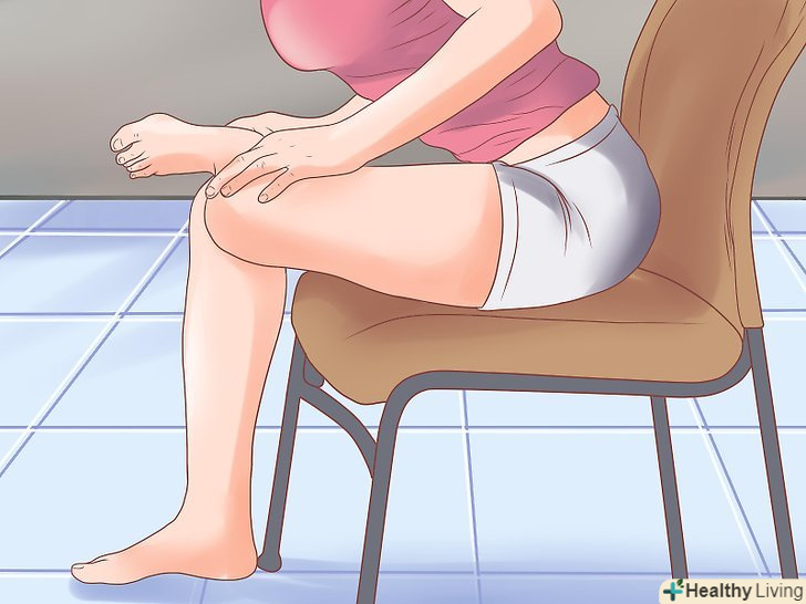 Розтягніть грушоподібний м'яз.ця вправа розробляє і розтягує м'язи стегна і м'язи попереку, тому зменшує жорсткість і тиск на стегно.- Сядьте на стілець. Ноги опустіть на підлогу. Якщо біль в стегні з лівого боку, покладіть ліву кісточку поверх правого коліна. (Якщо біль з правого боку, покладіть праву щиколотку поверх лівого коліна).