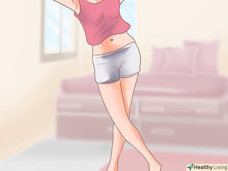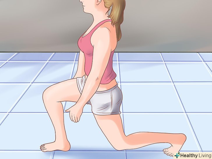 Спробуйте розтяжку стегнового флексора.ця вправа розтягує м'язи стегон, тому зменшує нерухомість і тиск на них.- Станьте в позу, як ніби ви збираєтеся зробити випад. Передня нога повинна знаходитися на 7,5 -10 см перед задньою, обидва коліна зігнуті під кутом 90 градусів. У задній нозі повинна з'явитися біль, так як саме на неї припадає найбільше розтягнення.