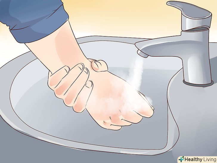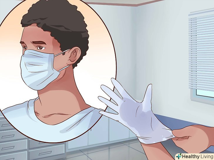 Захистіть себе від хвороб, якщо надаєте допомогу іншому потерпілому.кров є переносником різних інфекційних захворювань, на зразок ВІЛ. Якщо ви хочете захистити себе і потерпілого, надіньте захисний одяг. Вона вбереже вас від хвороб, які можуть бути у потерпілого, і вбереже його від хвороб, які є у вас.[7]- Надіньте латексні рукавички, якщо збираєтеся торкатися до закривавленої рани.