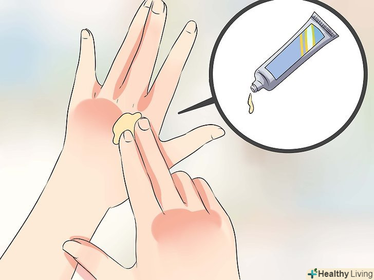 Нанесіть на рану безрецептурну мазь з антибіотиком. Це запобіжить зараження. Такі мазі (Тетрациклін, Левомеколь) можна купити в найближчій аптеці.[10]-